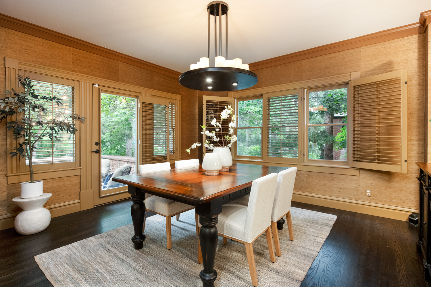 Upstairs, en suite bedrooms include a serene primary retreat with treetop views and Flatiron glimpses. Outdoors, native stone patios in both the front and back yards create year-round living spaces-ideal for Colorado mornings, outdoor dinners, and fall afternoons with friends. Mature landscaping, a fenced yard for kids and pets, and thoughtful privacy complete the setting.